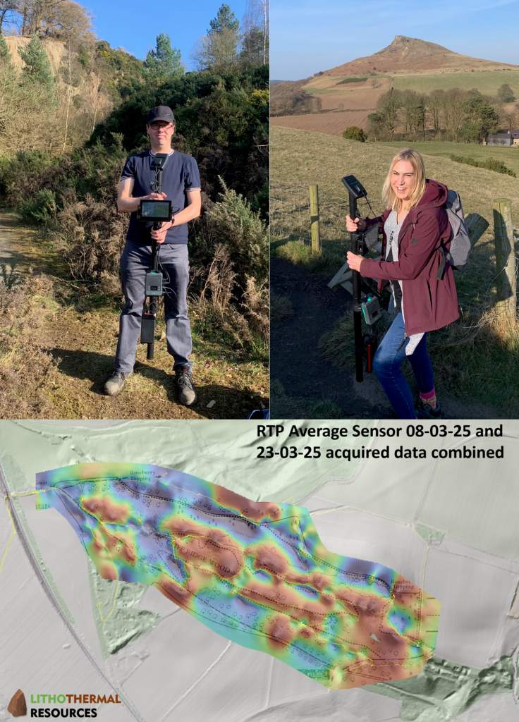 Designed for field based applications where challenging near-surface topography restricts the use of flown magnetometry systems by drone or light aircraft, the HGLR1 developed in-house by Lithothermal Resources is a low-cost and fully interactive game-changer. It uses two FG-3+ fluxgate sensors with a low noise floor and sub +/- 0.2 nanoteslas sensitivity. A Raspberry Pi acts as the data logger from an analogue-to-digital converter, also hosting the bespoke software for real-time analysis, sensor calibration, GPS and GIS (for planning and walking routes) which are all integrated using a 7-inch touch screen display. The data can be processed quickly with in-house software to edit tracks, thresholds and filtering immediately after acquisition. The system is weatherproof, lightweight (under 5 kg) and has an internal lithium battery allowing for five hours of continuous field measurements that can be supplemented by a power pack providing an additional ten hours recording. Successful field trials makes it ideal to map out features of limited width (sub 5 metres), such as mineralised veins, igneous dykes and alteration zones at very high resolution.